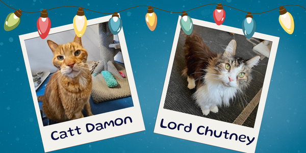 We are thrilled to announce the return of our Pet Naming Rights campaign this year! Our cats and dogs come from various situations—some surrendered by families, others rescued from hoarding or abandonment. Some pets arrive with funny names, sometimes we give them our own quirky names, like Catt Damon and Lord Chutney.