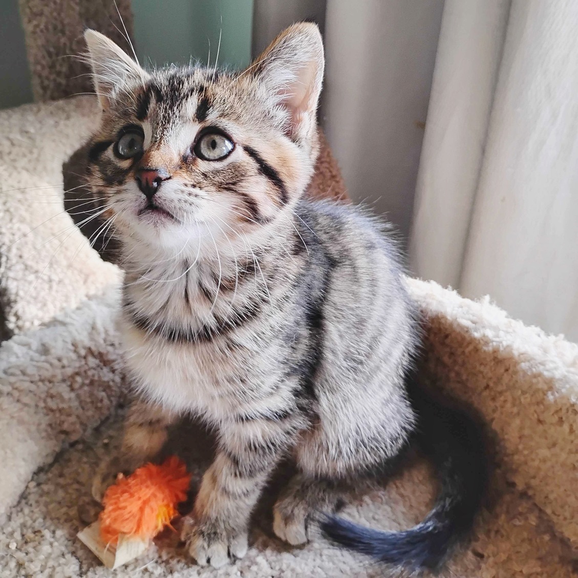 - All three kittens are enthusiastic climbers who have all discovered that once they have reached the top of the cat tree, it is also a perfect place for a nap!
