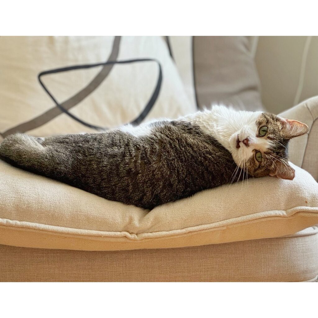 - Her daytimes are spent lounging on the couch and watching cat TV. Do not disturb!